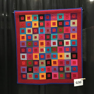One highlight for me was this striking exhibit of Gwen Marston's small quilts. Stunning, stunning, stunning, and snapshots don't convey the glowing beauty of these pieces.