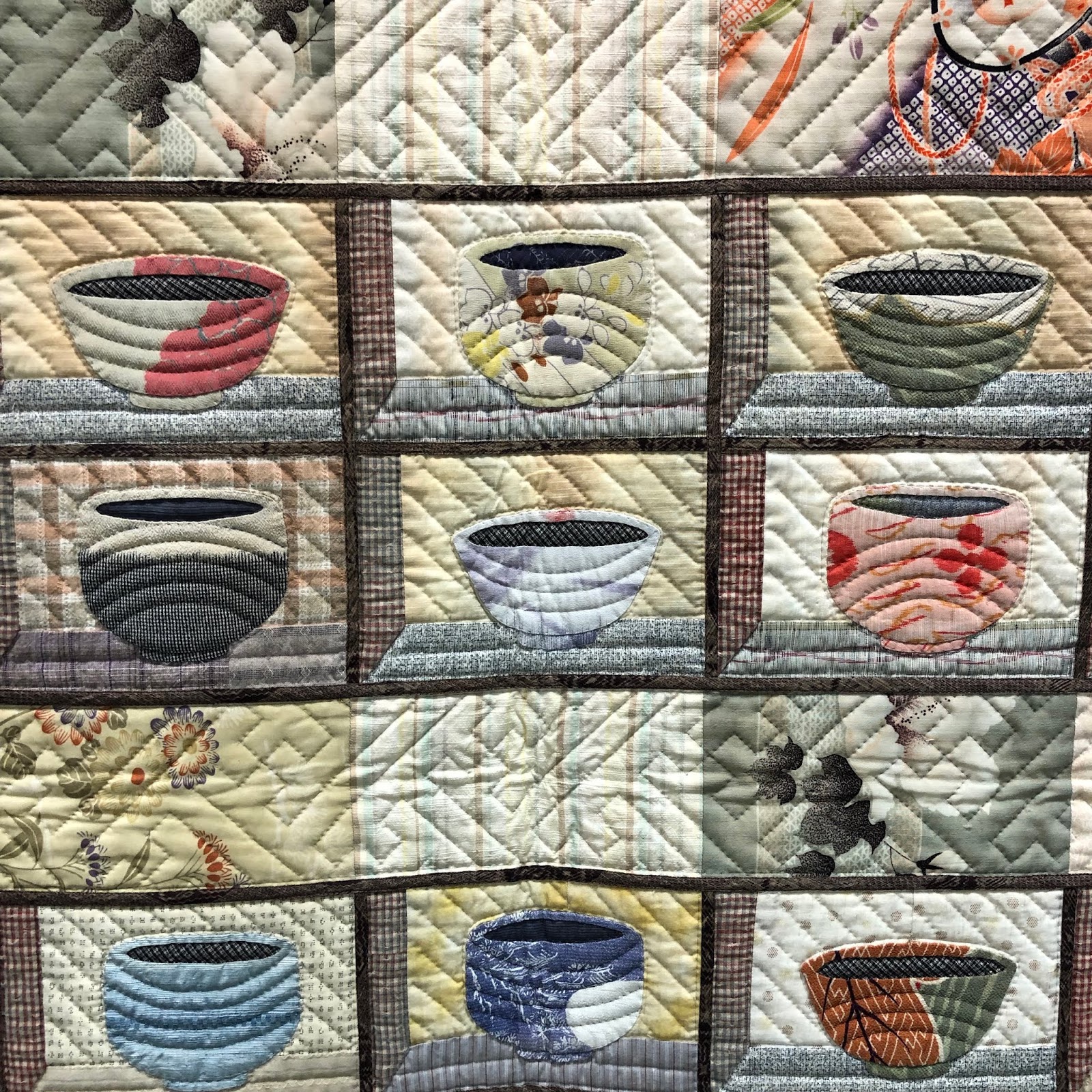 Thanks again for sharing photos of these fabulous quilts. The bowls by Nobuko Miyake are simply wonderful, such textural (heavy?) background fabrics add a lot of interest to the appliques. I hope you find an apartment very soon and can settle in with your Bernina.