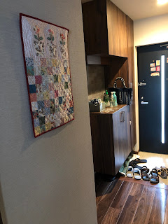 ReplyDeleteI love how you created the flowers in your little quilt, and the colors and fabrics you used are both calm and cheerful. And welcoming in your entryway.