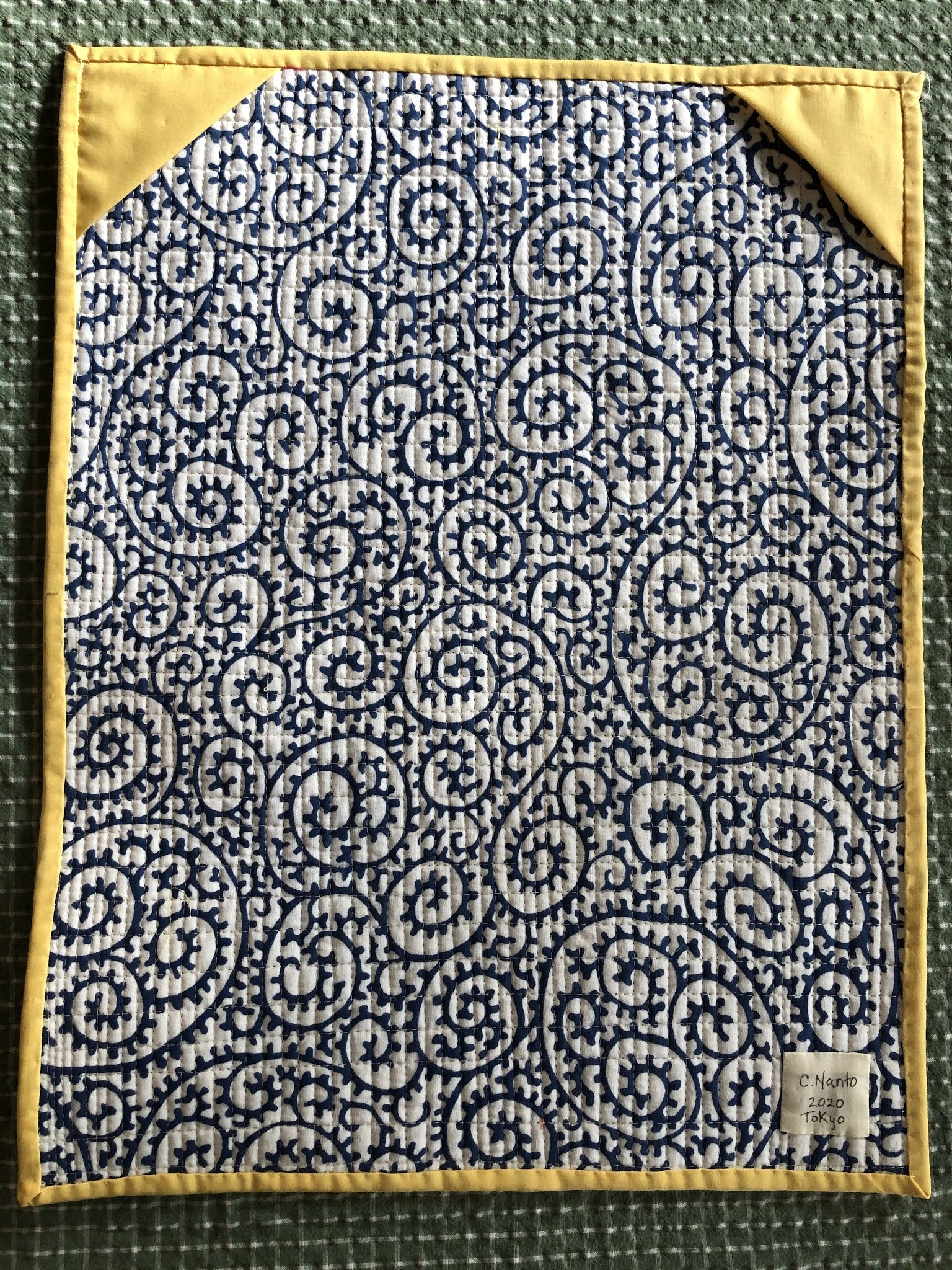 It measures about 13"x17". The backing is one of my favorite tenugui. The name of the pattern escapes me.